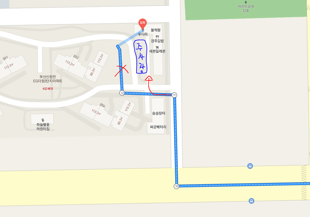주차방법 : 부산신항만 EG더원2단지아파트 입구에 들어가자마자